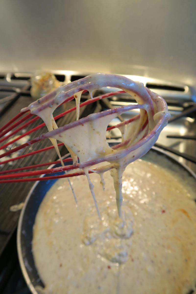 Consistency of the cheese sauce before adding it to the pasta and cauliflower **impossible not to taste** I kept dipping pretzel rods in it…